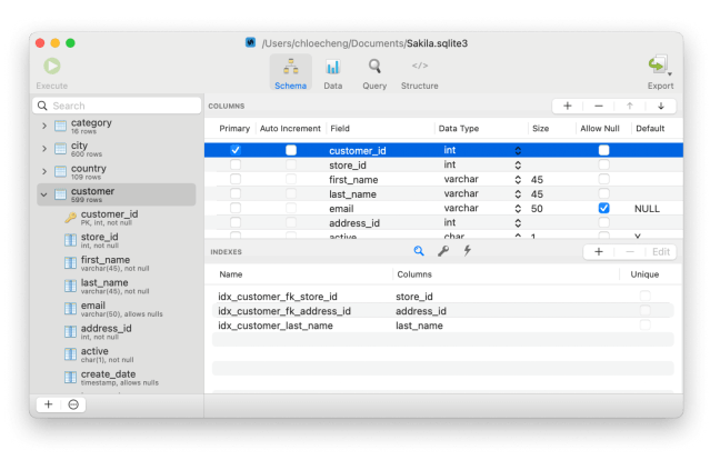 So far as SSMS macOS alternate options go, Base is nice for customers who want quick and reliable administration for SQLite databases. It gives all of the fundamentals: schema viewing, desk enhancing, and SQL question execution, whereas additionally offering superior instruments for including and modifying columns and constraints with out having to enter CREATE TABLE instructions manually.